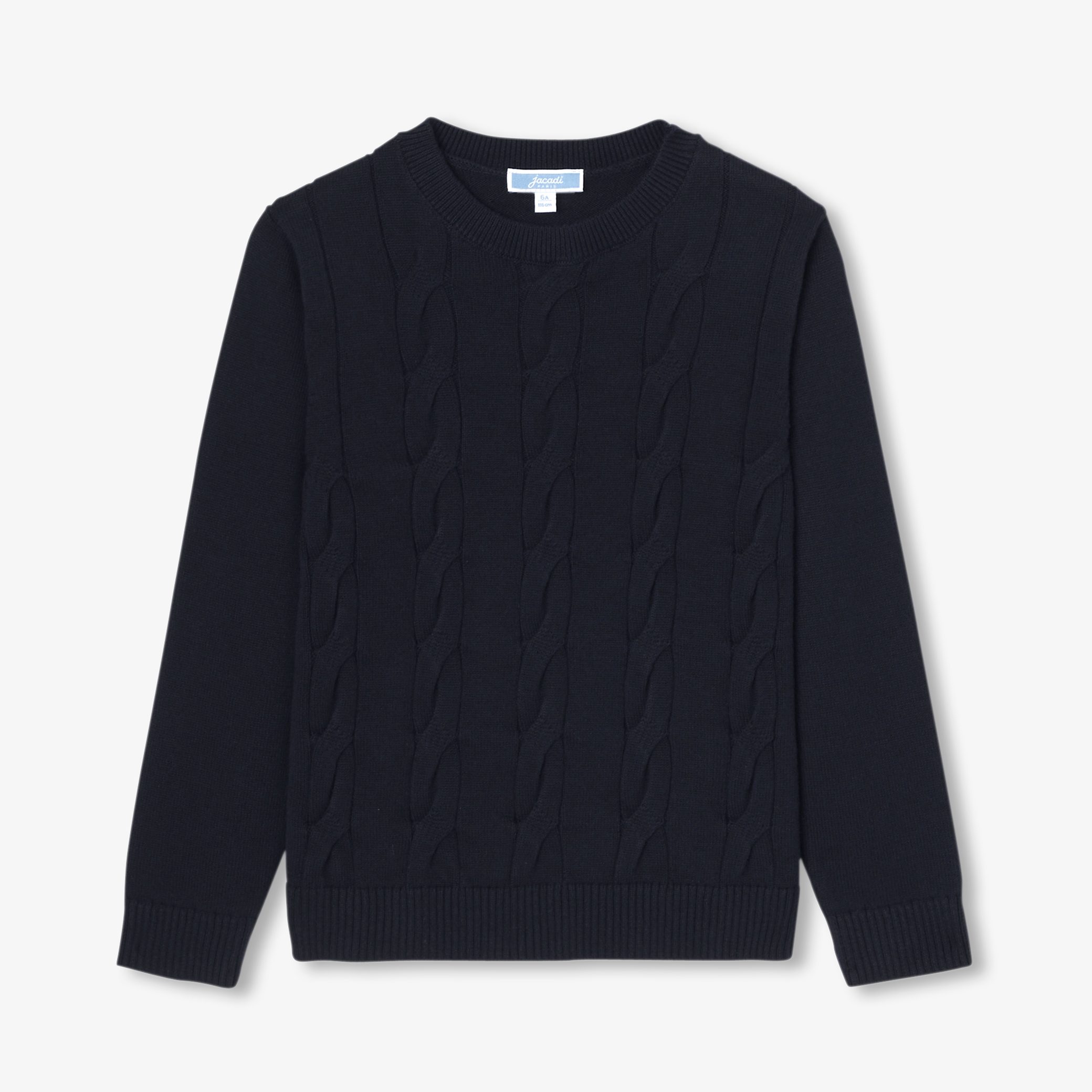 With impeccable cut and fabric, this classic Boys sweater is inspired by the chic Irish sweater for back-to-school. Made from organic cotton, its soft knit provides comfort and coverage from the start of the season. Sublimated by a set of twists for a tone-on-tone modern effect, this essential can be worn with jeans or velvet pants.