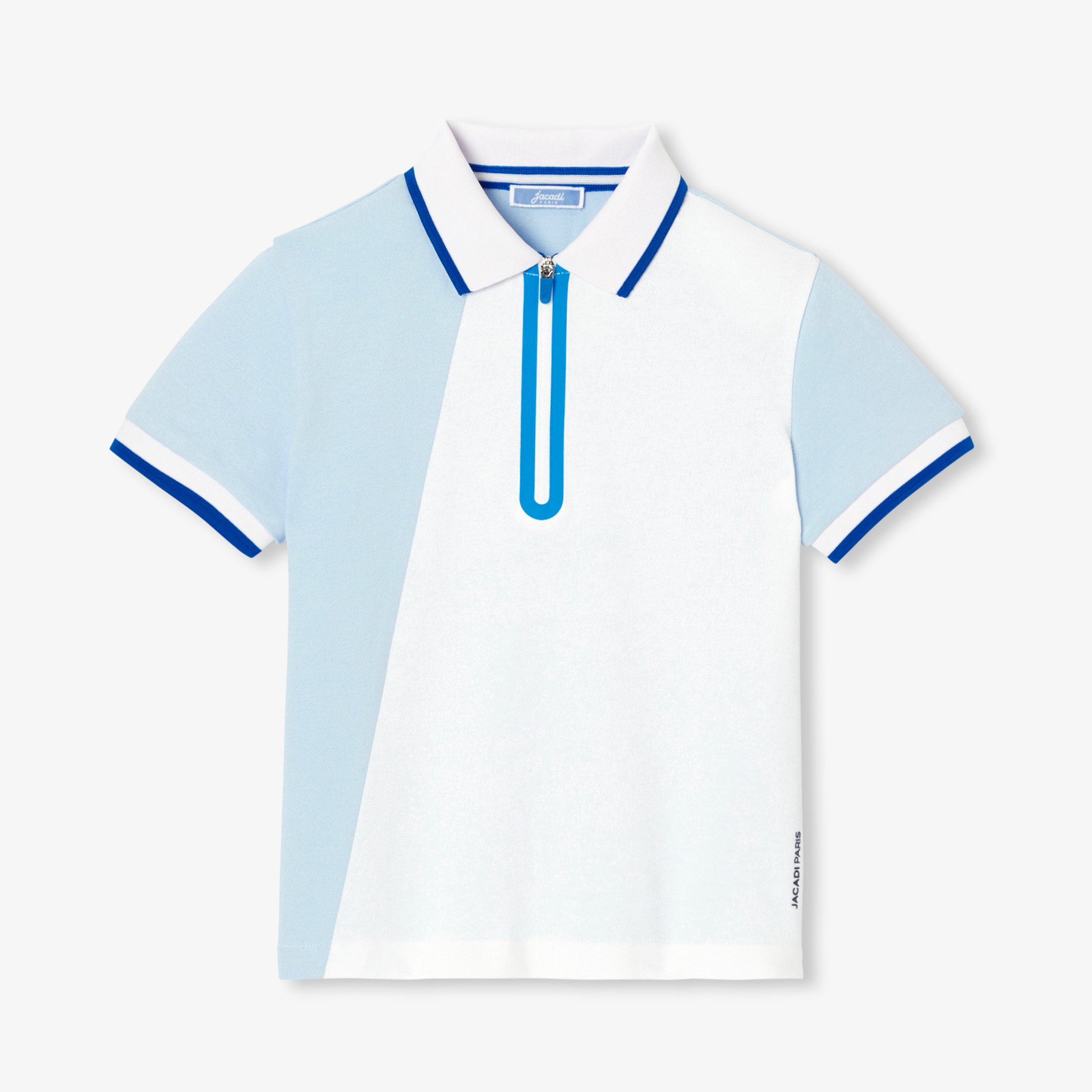 With its contrasting cut-outs for a colourblock look, the striped rib collar and cuffs and framis zip at the neck make this boy polo shirt dynamic. Wear it with joggers in spring or cotton piqué shorts in summer.