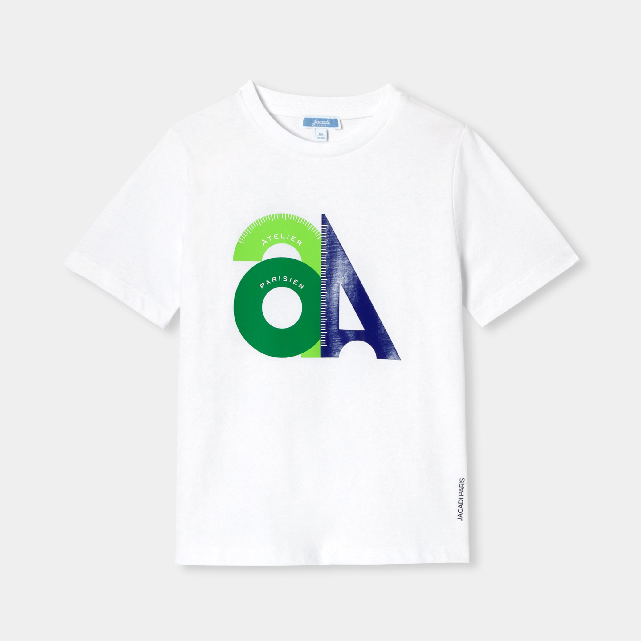 An Eiffel Tower in the shape of a square, geometric animations reminiscent of drawing materials, this boy t-shirt is inspired by the world of architecture for spring. In organic cotton, short-sleeved and easy to slip on, shorts and jeans will match this everyday essential.