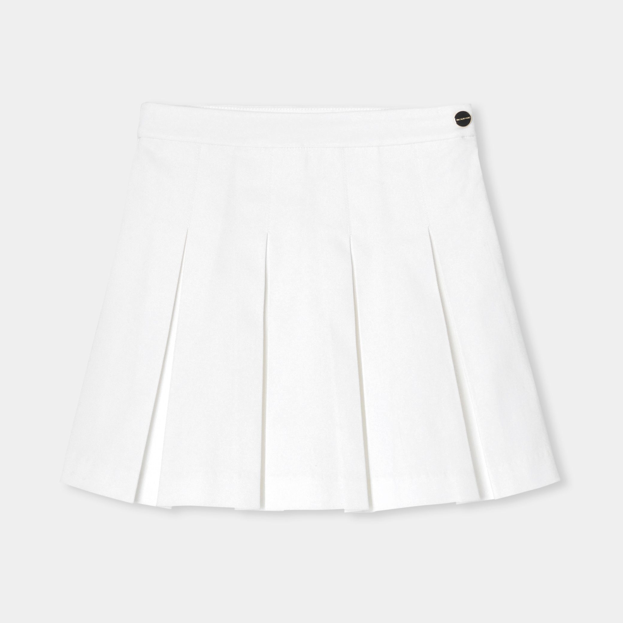 A preppy breeze blows through the little girl’s wardrobe with this pleated skirt. Made in cotton gabardine, its soft white colour will match a t-shirt at the end of summer and a sweatshirt and trainers at the start of the school year for an English college look.