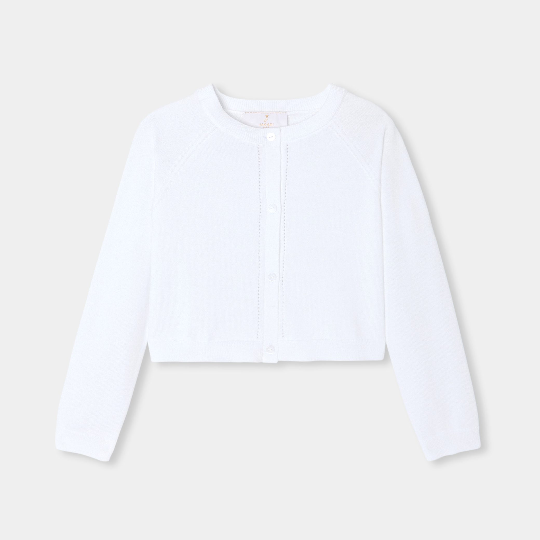 Cut short to show off Jacadi’s collection of ceremony dresses, this girl cardigan is made from organic cotton. With openwork sleeves and button fastening, it is the perfect finishing touch to her outfit on the big day.