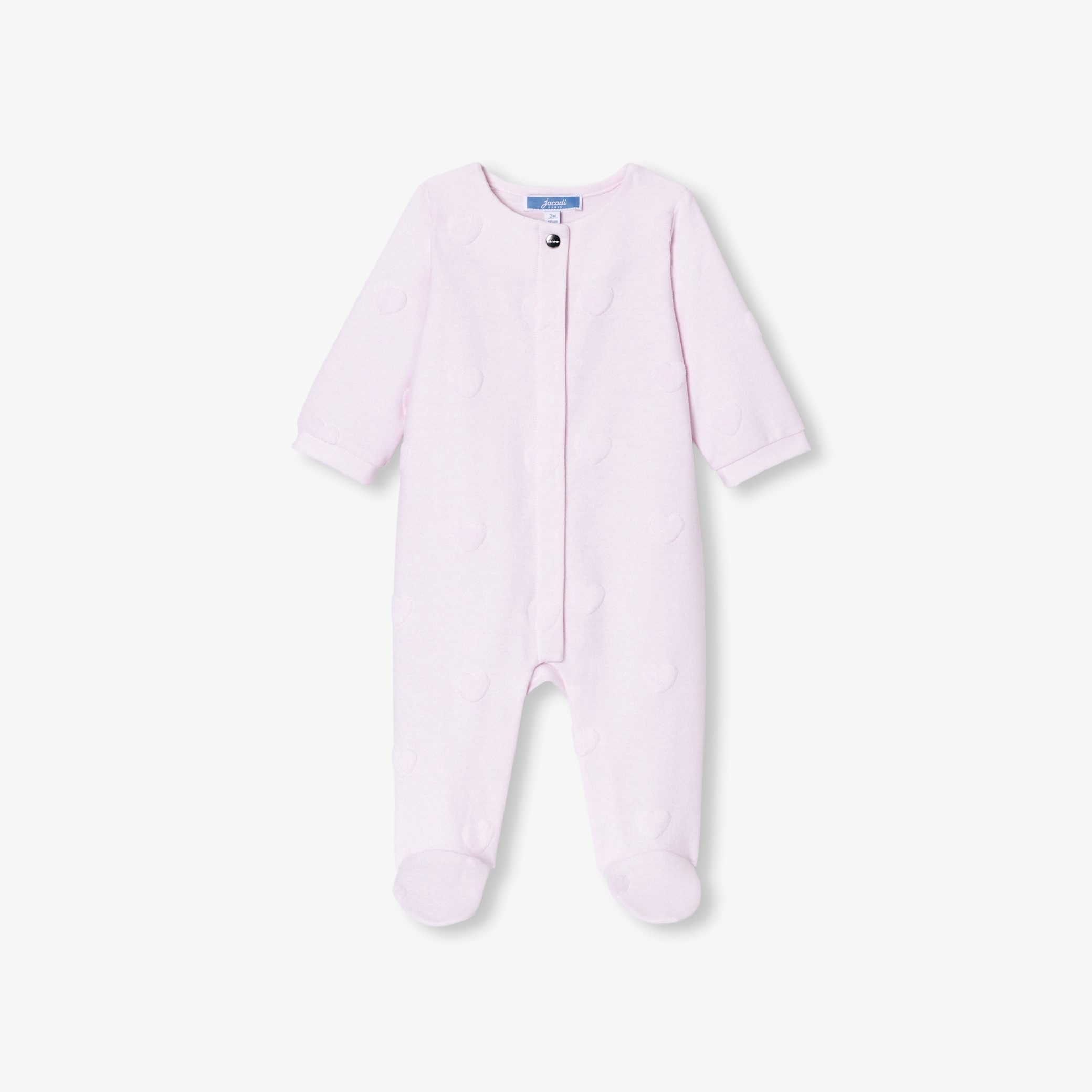 Combining comfort and modernity, Jacadi puts all its know-how at the service of newborns with these baby girl pyjamas in soft, comforting jersey. Designed for easy, secure dressing thanks to their front opening, a jacquard heart motif sublimates these pyjamas, ideal for a birth gift or hospital bag.