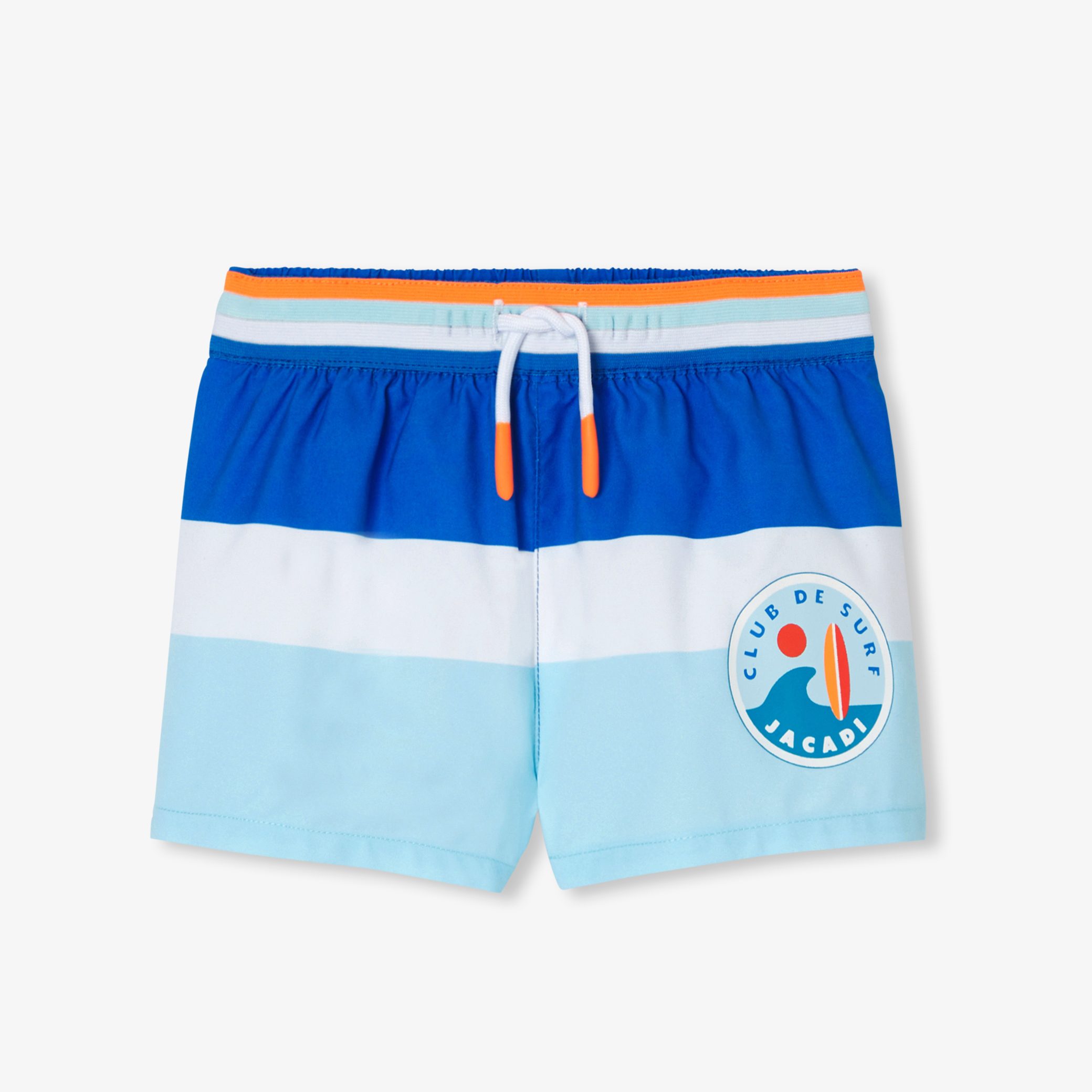 Colorful, geometric swimming with these baby swim shorts. Striped and easy to put on thanks to its elasticated waistband with drawstrings, this summer essential can be worn with the UPF 40+ UV protection t-shirt.