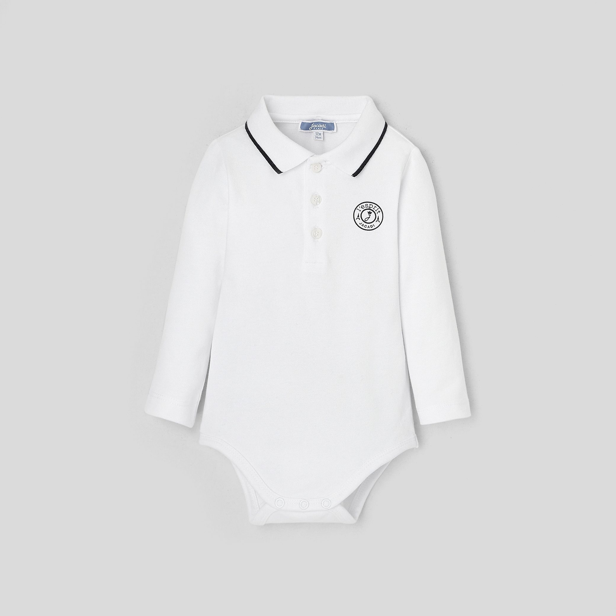 Everyday sport chic in this baby boy bodysuit. In cotton piqué and accented with a ribbed polo neck, pair it with jeans and a colourful cardigan for a city silhouette.