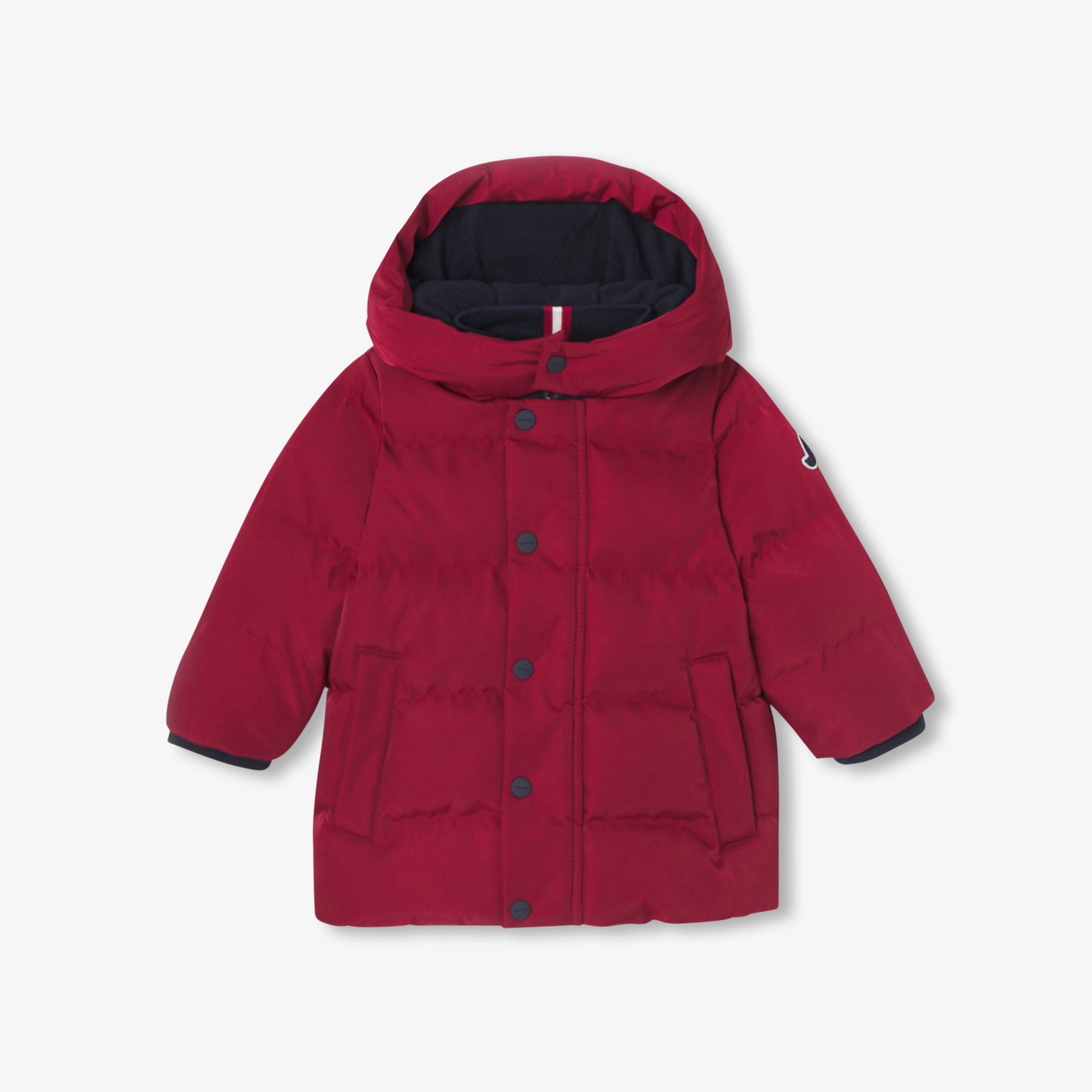 Perfect for warding off the first cold snaps, this baby boy parka combines the performance of water-repellent nylon with the warmth of recycled polyester filling and fleece lining. Practical and easy to put on thanks to its zip with snap tab, high collar, side pockets and badge on the sleeve finalise this urban and functional model ideal for facing winter.