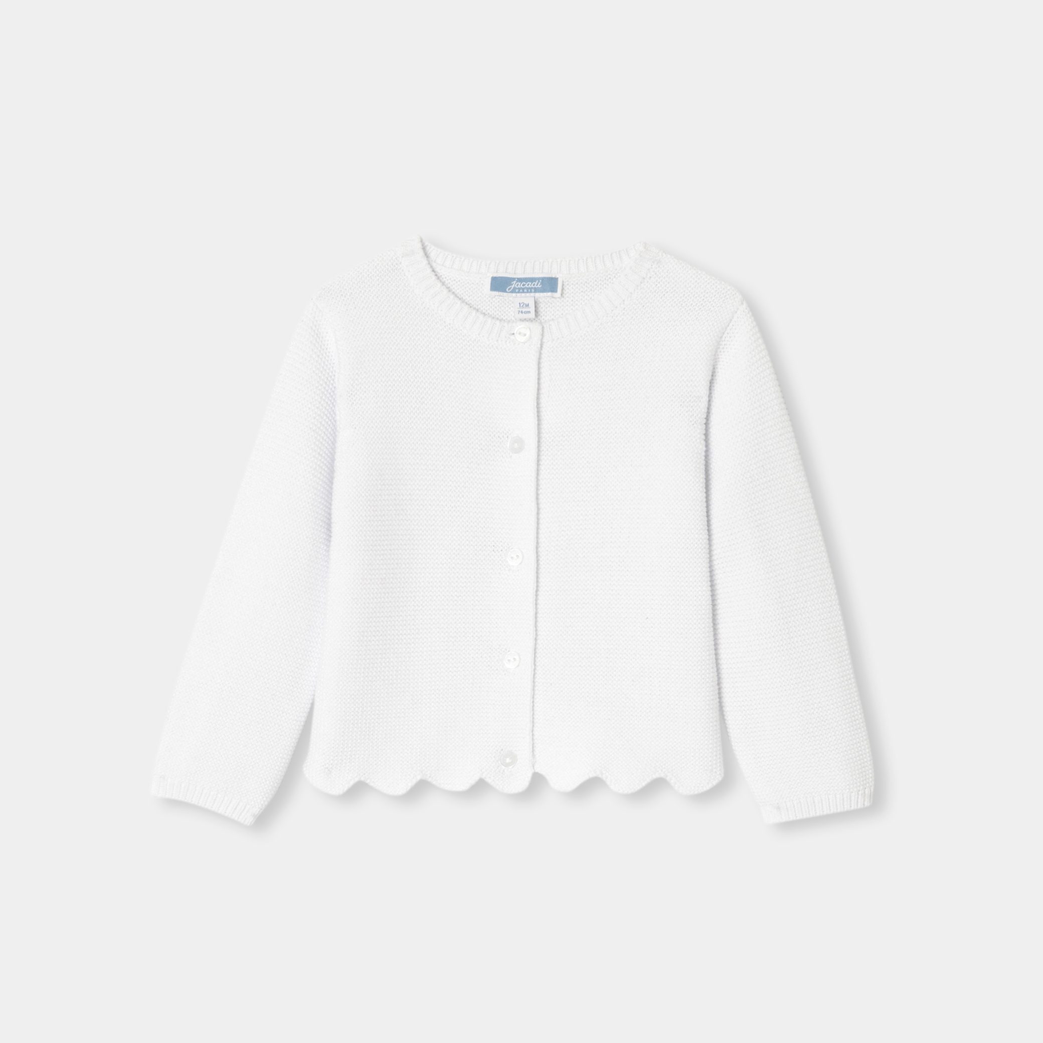 This baby girl cardigan will be an essential part of every outfit this season. Modernised with a scalloped base and offered in a range of colours coordinated with the Jacadi collection, this everyday essential can be worn with a blouse or dress.