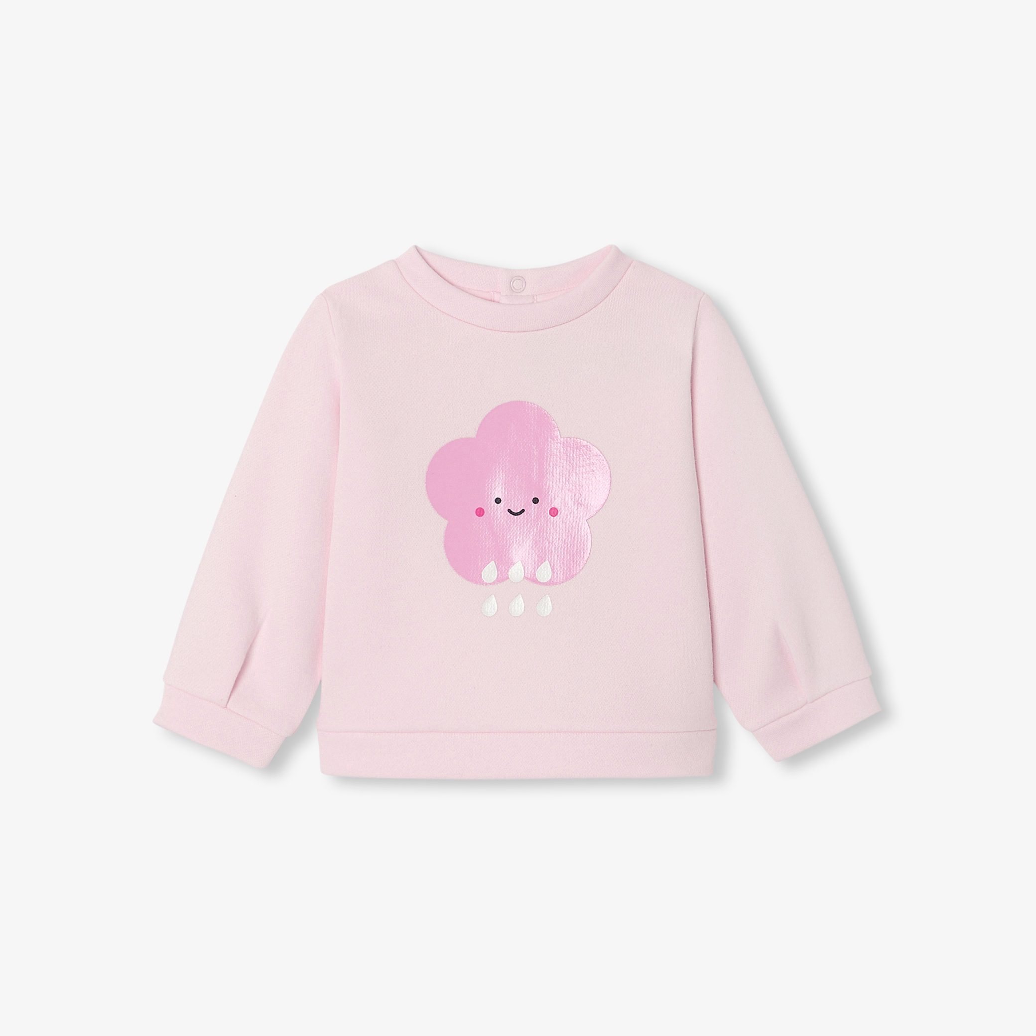 To counter the spring chill and put together everyday looks, our designers have created a baby girl jumper with a casual chic look. Made from soft, cosy fleece, a charming glossy-effect motif embellishes this essential, which can be worn with jeans or shorts.