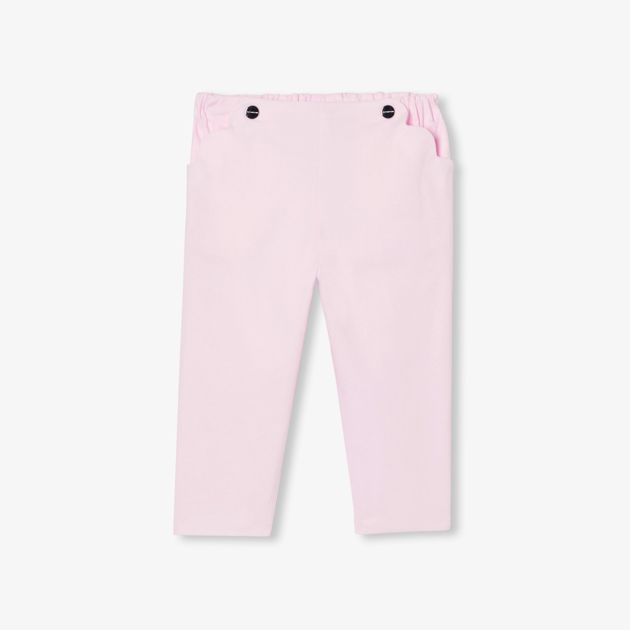 Everyday casual chic with these baby girl trousers. Accessorised with scalloped pockets and decorative tab-style press studs, this t-shirt and printed blouse will go beautifully with this spring wardrobe essential.