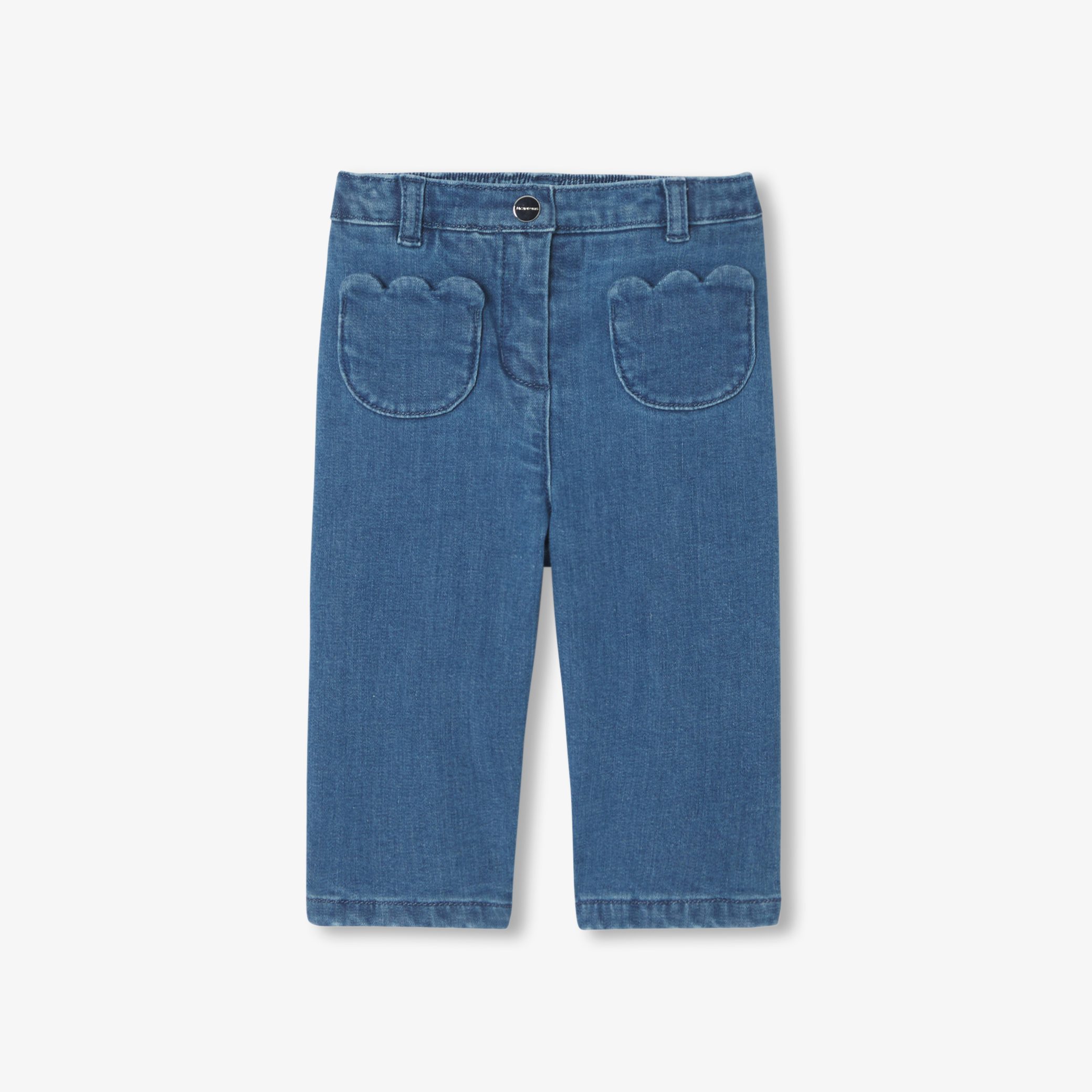 For the daycare and the first spring outings, choose the comfort of these baby girl jeans. A wardrobe classic lined in cotton voile for baby’s comfort, with tulip-shaped pockets and an elasticated waistband, these jeans are perfect for matching with a blouse and cardigan for everyday wear.
